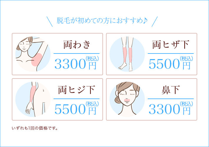 さらに個別部位ごと、1回ごとの脱毛も可能です。